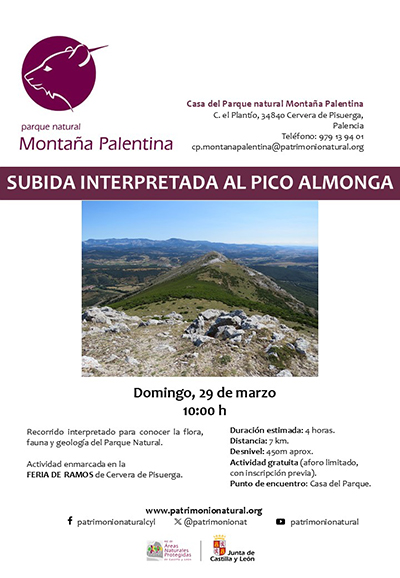 SUBIDA INTERPRETADA AL PICO ALMONGA (1.519 M) EN LA MONTAÑA PALENTINA Tendrá lugar el domingo 29 de marzo de 2026 con salida a las 10 h. desde la Casa del Parque. por Casa del parque "Fuentes Carrionas y Fuente Cobre-Montaña Palentina"